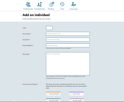 When you click on ‘invite a professional’, you see this page. You will need the emailaddress of your healthcare provider and their name.